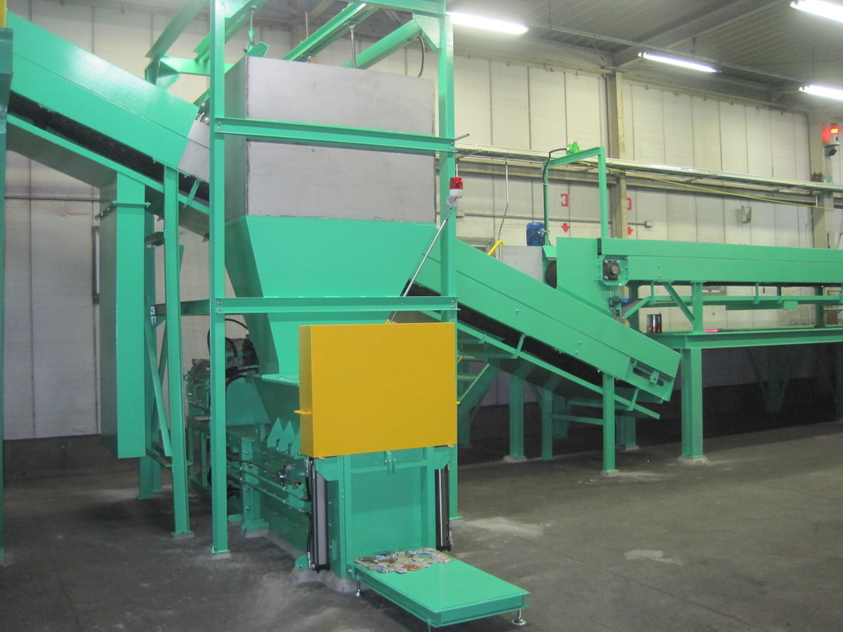 ・一方締めの空缶プレス機です。多くの実績により改良を重ねてきた機種で、多くのリサイクル施設で活躍しております。