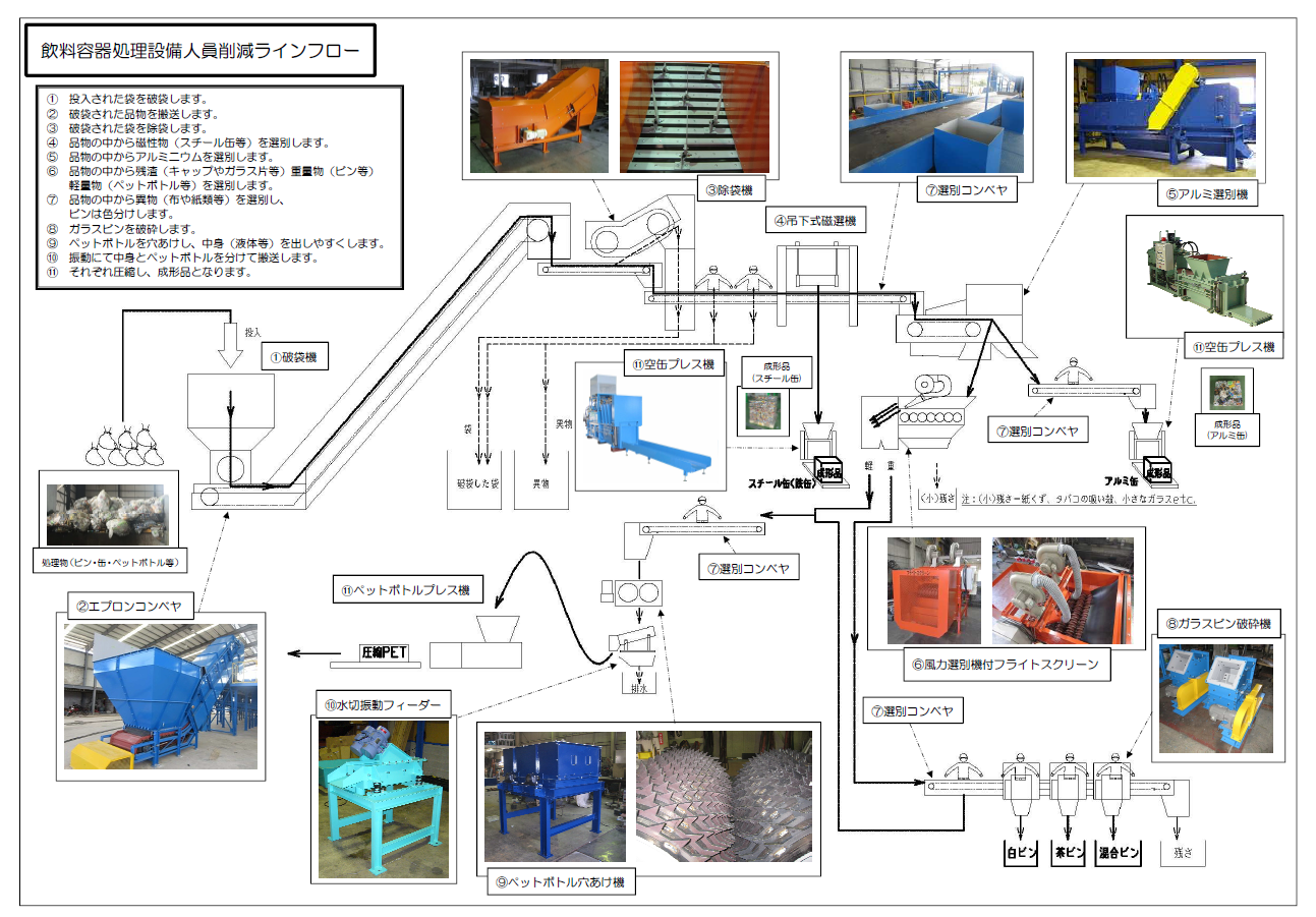 このほかにも、大容量ペットボトルの穴あけに対応できる「ペットボトル穴あけ機」など、他社にはあまりないオリジナルな機器を開発し、リサイクル処理施設の生産性向上に貢献しています。